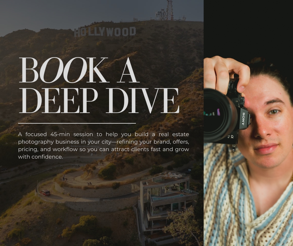 A focused 45-min session to help you build a real estate photography business in your city—refining your brand, offers, pricing, and workflow so you can attract clients fast and grow with confidence.