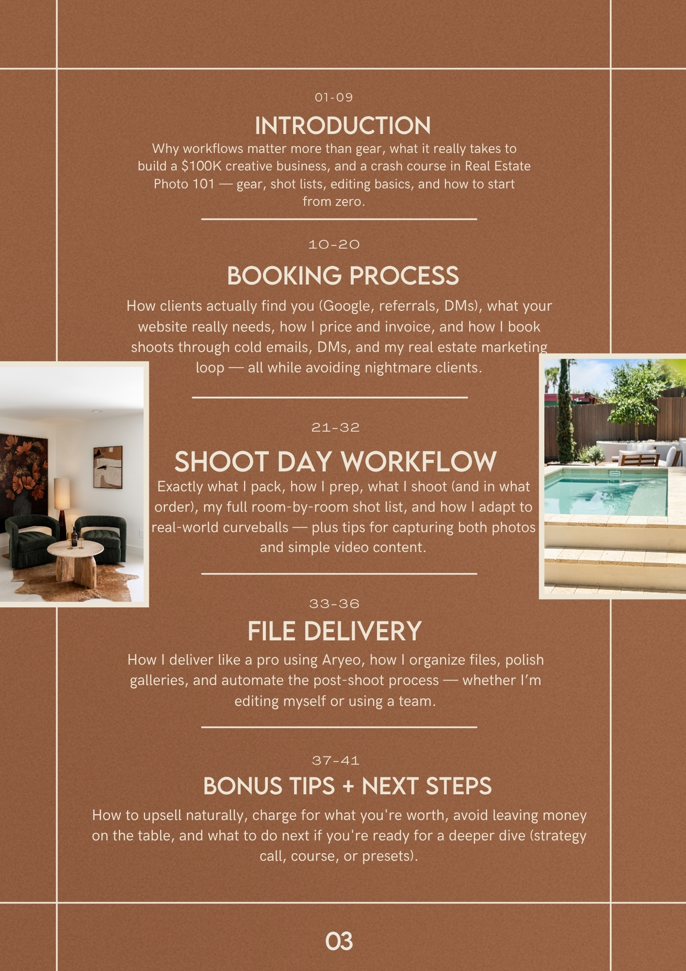 Photographers, videographers, and creative entrepreneurs looking to book more real estate clients and systemize their process.